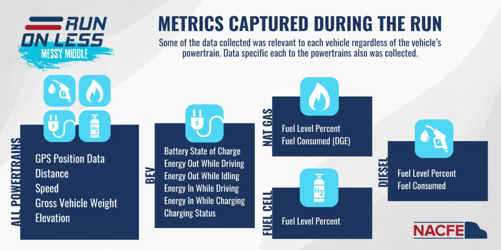 The goal of Run on Less – Messy Middle was to bring clarity to the long-haul segment of the market. The purpose of this demonstration was to learn about the performance of heavy-duty Class 8 trucks — sleepers and day cabs — in long-haul return-to-base and over-the-road duty cycles.